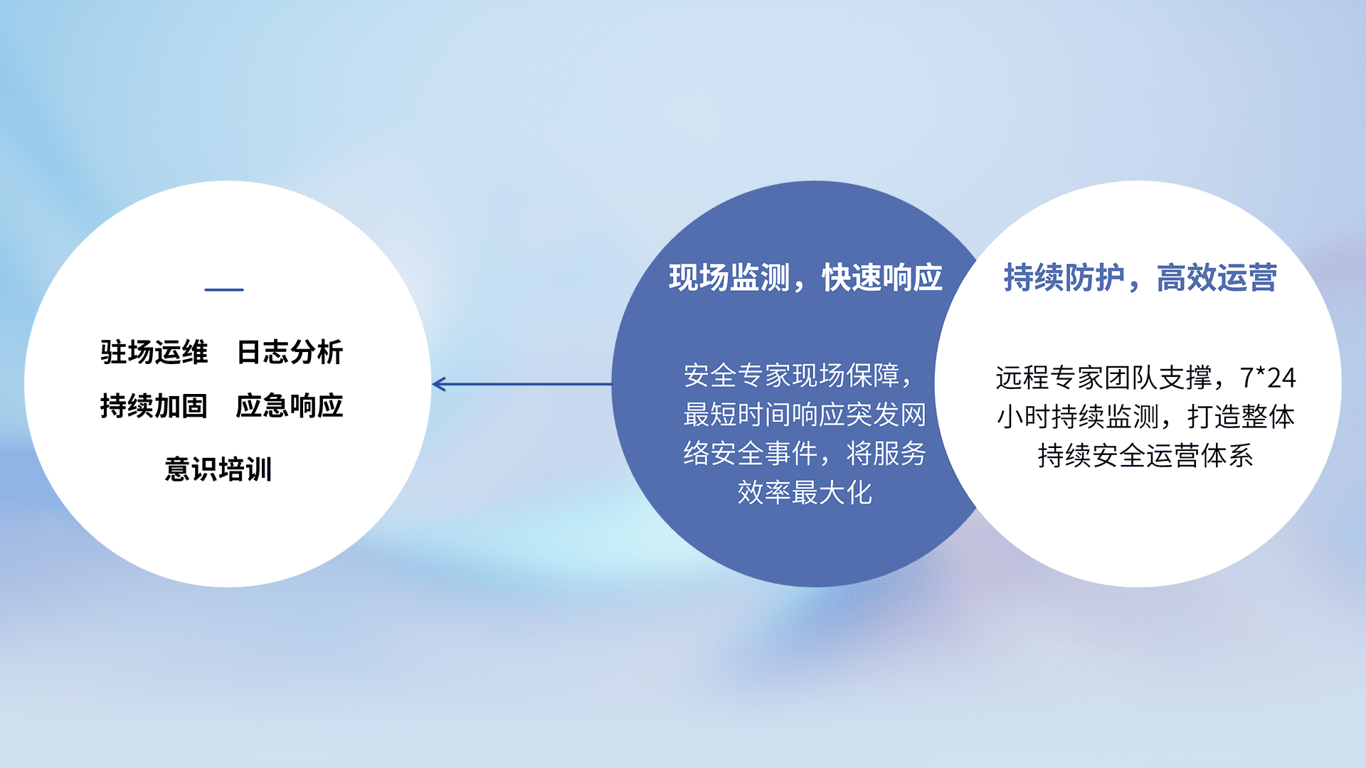7X24小时持续监测安全事件,保持安全策略有效性,降低资产脆弱性风险,,精准拦截黑客攻击,,,,减少被黑客利用的机会,,,第一时间遏制,,,降低损失。。。